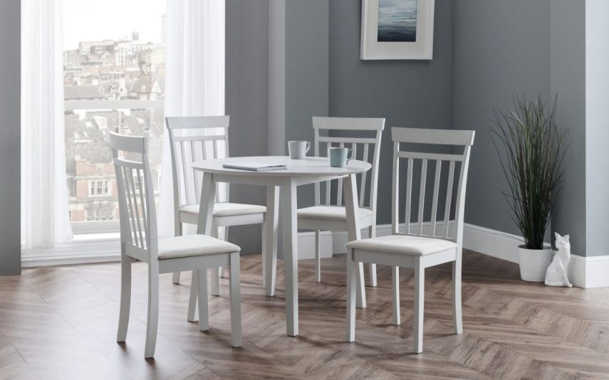 A stylish, double drop leaf round dining table in an immaculate grey lacquered finish. Its clean, crisp look fits seamlessly with both traditional and contemporary decor. The perfect space saving addition for a smaller room.