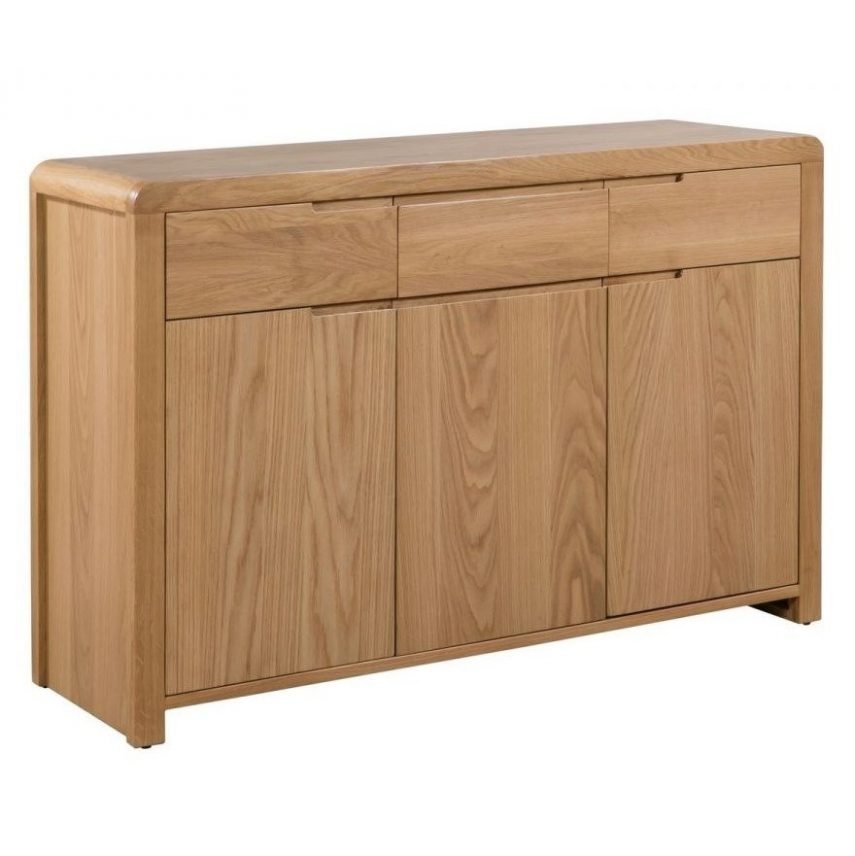 Crafted from solid oak and oak veneers, the Curve combines clean lines with a gently curved edging, adding a modern, retro feel to any dining area. The Curve Sideboard provides great storage with three drawers and three doors, perfect for the kitchen, dining, or living room.