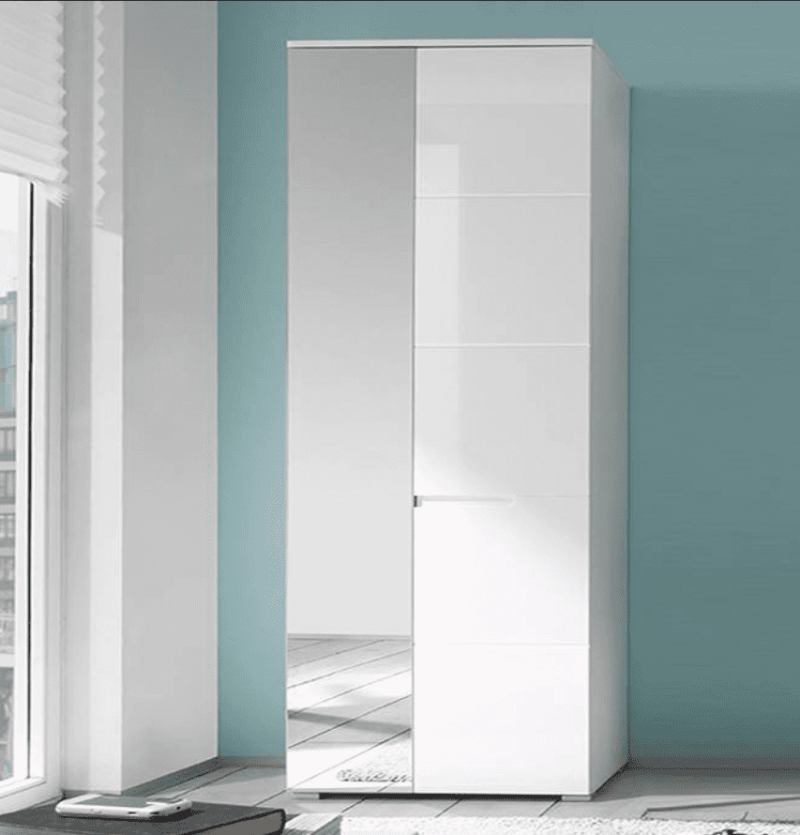 Introducing the Marella White Gloss Slim Wardrobe with Mirrored Door, a sleek and elegant storage solution for any room. This wardrobe features one mirrored door, a pullout hanging rail, and four shelves, offering ample space to organize your clothing and accessories. Its slim design and high gloss finish make it a stylish and functional addition to your home.